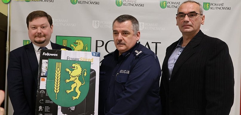 W poniedziałek (08.12.) Starosta Kutnowski, Daniel Kowalik, wraz z Tomaszem Walczewskim, Członkiem Zarządu Powiatu Kutnowskiego, przekazali na ręce Komendanta Komendy Powiatowej Policji w Kutnie, insp. Wojciecha Świercza, nowy sprzęt biurowy.