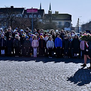 Jesteśmy tutaj dzisiaj wszyscy, cała społeczność Szkoły Podstawowej nr 2. Uczciliśmy imieniny naszego patrona, spotykając się tu przy pomniku, natomiast dalsza część uroczystości, czyli "Na imieninach u Marszałka", odbędzie się już w siedzibie naszej szkoły. Ja może poproszę naszych tutaj uczniów, może oni tutaj znają więcej szczegółów na ten temat, z pewnością chętnie powiedzą, co na dzisiaj zaplanowaliśmy na imieniny Marszałka.