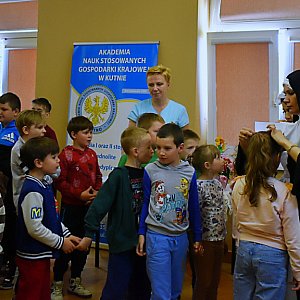 Uroczystość rozpoczęły władze uczelni: rektor dr hab. Sławomira Białobłocka oraz prodziekan Wydziału Nauk o Zdrowiu mgr Monika Mikołajczyk, które powitały pierwszą grupę gości – uczniów ze szkoły podstawowej w Gołębiewku Nowym.