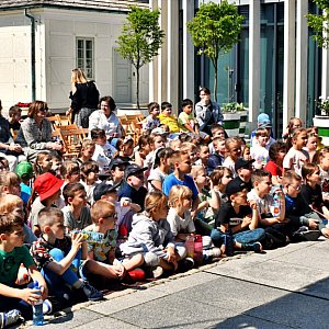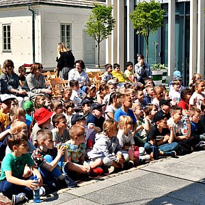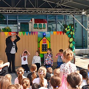 Plan wydarzenia jest dość dynamiczny, co przy tak dużej liczbie dzieci nikogo nie dziwi. Dziś czekają na uczestników dwie główne atrakcje. Pierwszą z nich jest spektakl teatralny w wykonaniu Teatru Piccolo z Łodzi. Drugą – pokaz sprzętu i pojazdów służb mundurowych: policji, straży pożarnej oraz Wojsk Obrony Terytorialnej. Frekwencja dopisuje, a zainteresowanie jest spore – podobnie jak podczas wcześniejszych zajęć. Dużo się dzieje, a choć przy dzieciach trudno o pełen porządek, to ten kontrolowany chaos jest wręcz elementem takiego wydarzenia.