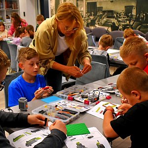 Kończymy pierwszy tydzień zajęć z klockami LEGO. Oczywiście zawsze są to nawiązania tematyczne do gier, książek itd. Dzisiaj przenosimy się trochę do świata klasyki, mianowicie do świata Harry'ego Pottera. I tutaj właśnie panie instruktorki z zewnątrz wymyślały te zajęcia tematyczne. Ale co ciekawe, muszę zauważyć, pomimo licznych apeli i tak się obawialiśmy, czy ten komplet dzieci uczestników będzie, czy ktoś nam się nie wykruszy. Powiem szczerze, jestem bardzo zadowolony, jednak ten apel trafił do rodziców i mamy cały czas 20 uczestników, nikt gdzieś tam nas nie informując nie przychodzi, jest cały czas. Także mam też taką nadzieję, że będzie tak już do końca wakacji.
