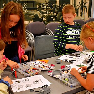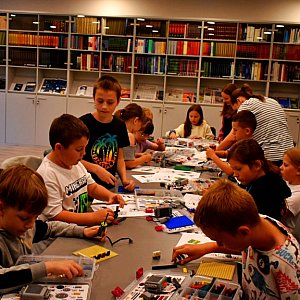 Dzisiaj (09.07) w Miejskiej i Powiatowej Bibliotece Publicznej w Kutnie odbyły się kolejne zajęcia w ramach tegorocznego cyklu warsztatów dla najmłodszych "Wakacje w Bibliotece. W tym tygodniu tematem przewodnim zajęć było pobudzenie kreatywności dzieci przy pomocy klocków Lego.