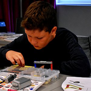 Trudno jest, bo to jest cały mechanizm, jakiś silnik itd. Trzeba parę klocków wpiąć w to, później trzeba jeden klocek wpiąć w inne miejsce, gdzie przelatuje prąd i się zaczyna wszystko dziać. Buduję latającą miotłę z Harry'ego Pottera.