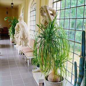 Największym takim naszym skarbem też w parku są rzeźby pałacowe w stylu rokoko, one są starsze od samego pałacu.Przed wojną tych rzeźb było 22, do dzisiaj zostało niestety tylko 8 i te rzeźby, były prowadzone badania skąd hrabiowalewski je sprowadził. Wiemy, że są z pierwszej połowy XVIII wieku, prawdopodobnie stały gdzieś wysoko na jakimś gmachu. Świadczy o tym to, że w przypadku jednej rzeźb chociażby odległość od kostki do kolana jest znacznie mniejsza niż od kolana do biodra, co świadczy o tym, że musiało być przestronne patrzenie z dołu właśnie na te rzeźby.