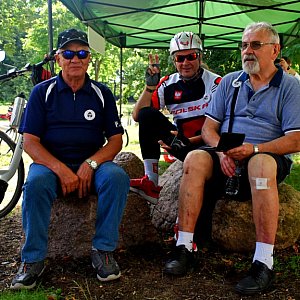 Staram się dojechać do mety, staram się być piąty, przynajmniej, bo jest nagroda za piąte miejsce. Może się uda. Tu z wnukiem będę jechał, będzie mnie asekurował, może popychał, pociągał, żebyśmy dojechali w pierwszej piątce. No i staramy się w każdy taki wolny czas, jak jest miejsce, rajd, jakieś spotkanie rowerowe, to korzystamy. Tylko się trzeba pomodlić trochę, żeby pogoda była, dopisała, bo się chmurzyło, a teraz słonko wyszło. Mam nadzieję, że będzie dobrze.