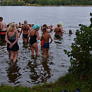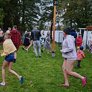 Nowych osób jest około 15-16, w tym dzieci. Uwaga, najmłodsze dziecko z tego co widziała ma 7 lat, dziewczynka. I będzie morsować, będzie wchodzić do wody. Oprócz tego, no co warto ze sobą zabrać? Czapkę na głowę, rękawiczki optymalnie i ja bym polecała też buty neoprenowe.