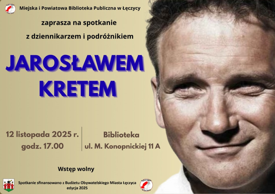 Miejska i Powiatowa Biblioteka Publiczna w Łęczycy serdecznie zaprasza na wyjątkowe spotkanie z Jarosławem Kretem – znanym polskim prezenterem pogody, dziennikarzem, fotoreporterem, podróżnikiem i autorem książek.
