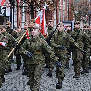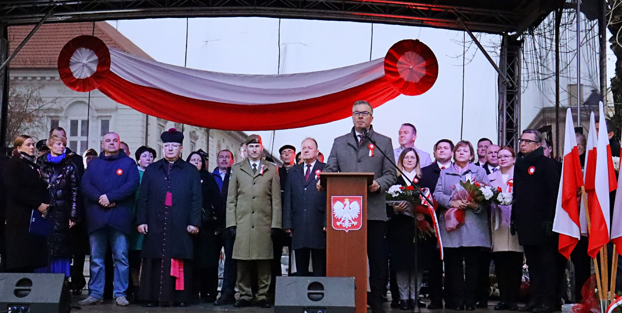 Tuż po mszy, o 12:00, na Placu marsz. Józefa Piłsudskiego rozbrzmiały pierwsze dźwięki Mazurka Dąbrowskiego. Do zebranych przemówił prezydent miasta - Mariusz Sikora.