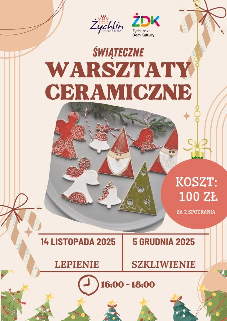 Zbliżające się święta to doskonały moment, by odkryć w sobie artystyczną duszę i stworzyć coś wyjątkowego. Żychliński Dom Kultury już teraz zaprasza wszystkich miłośników rękodzieła i świątecznej atmosfery na Świąteczne Warsztaty Ceramiczne.