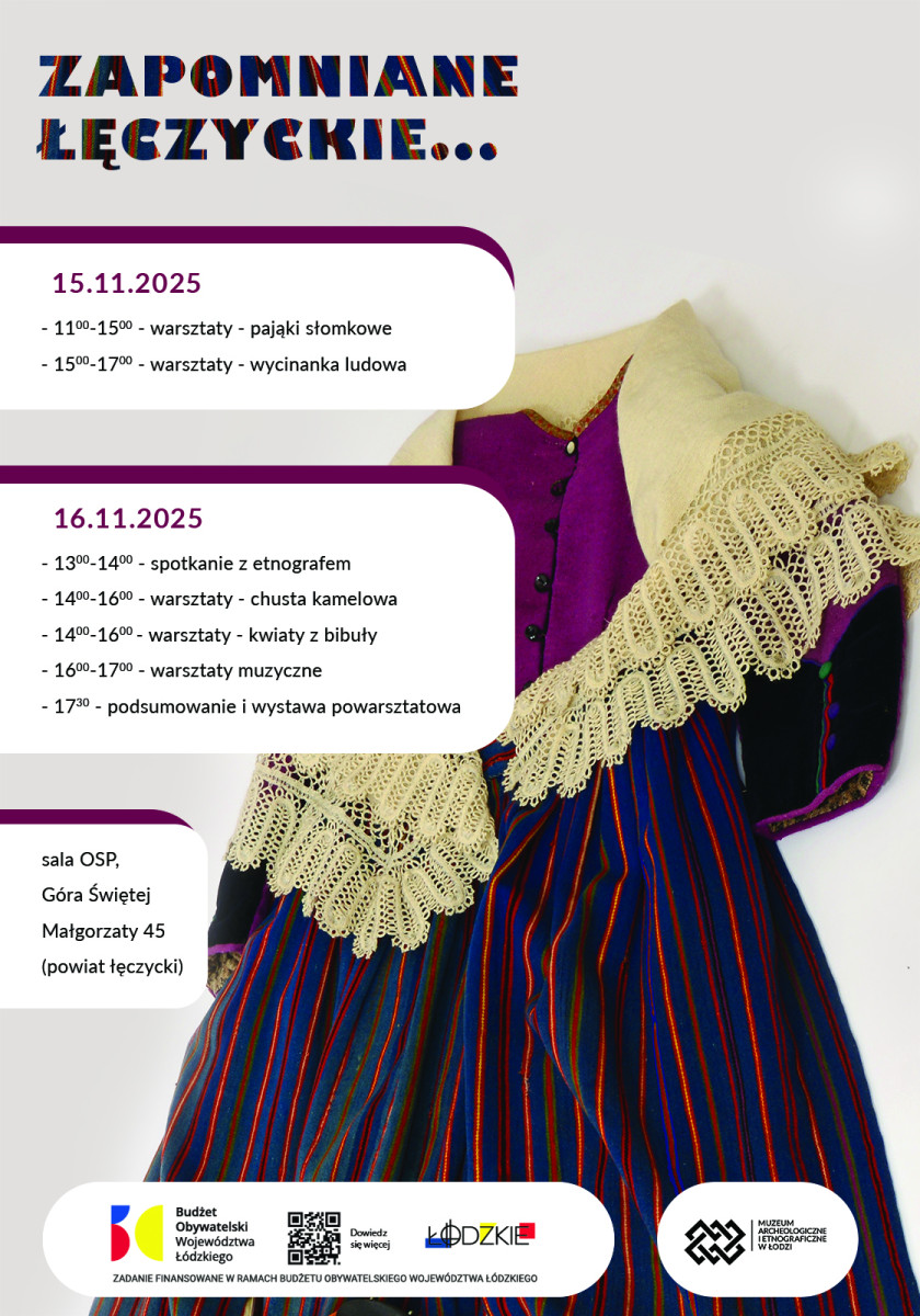 Uczestnicy będą mogli zapoznać się z twórczością regionu łęczyckiego - specyfiką ludowego rękodzieła, charakterystyką łęczyckich strojów, tradycjami związanymi z tą częścią naszego województwa.