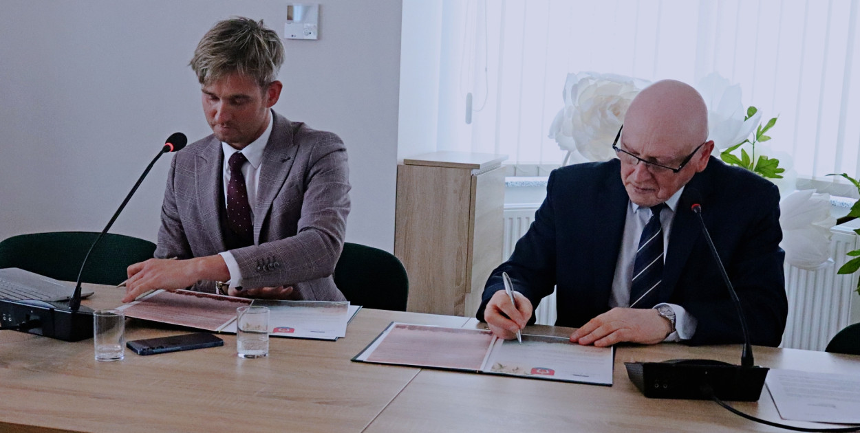 List podpisali: Mariusz Gądziak - właściciel zabytkowego Zespołu Dworsko-Parkowego w Imielnie oraz Zdzisław Kostrzewa - wójt Gminy Nowe Ostrowy.