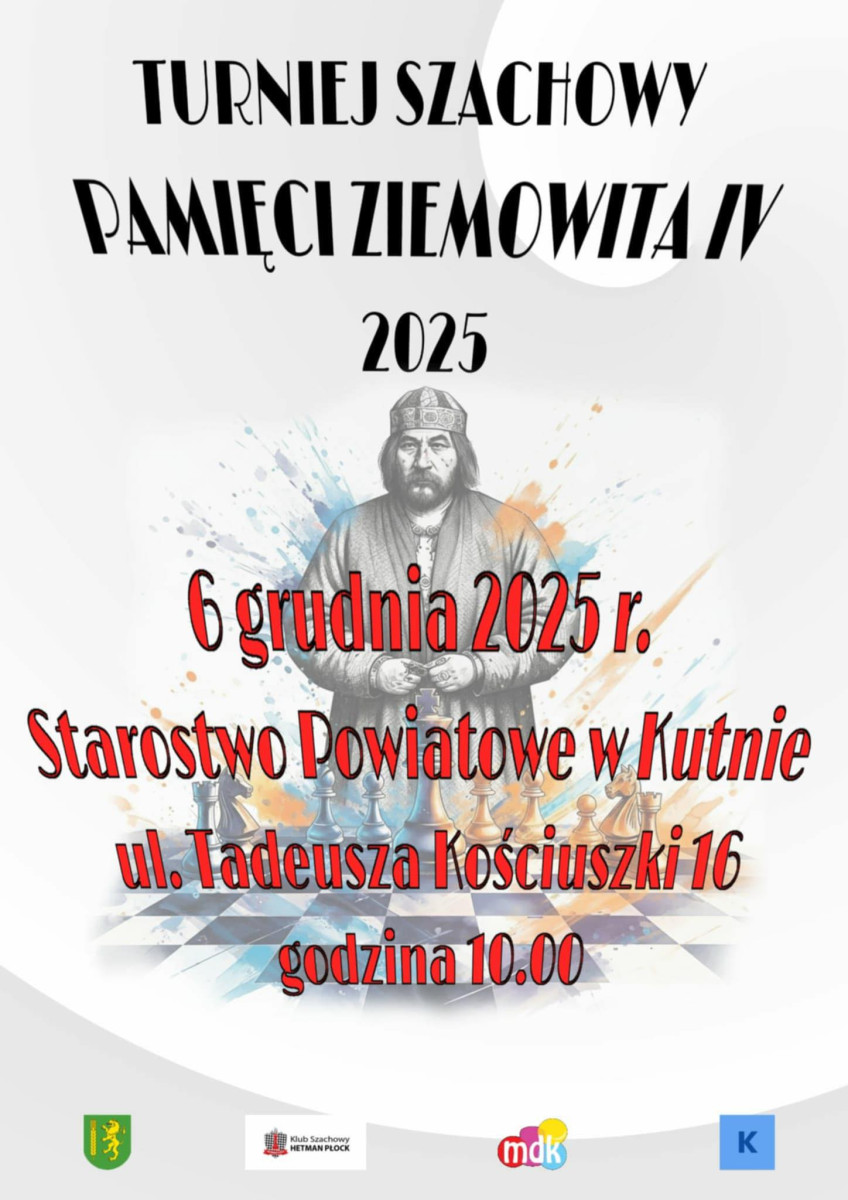 W najbliższą sobotę (06.12.) miłośnicy królewskiej gry będą mieli okazję spotkać się na wyjątkowym wydarzeniu. W Starostwie Powiatowym w Kutnie odbędzie się Turniej Szachowy Pamięci Ziemowita IV, który od lat przyciąga zarówno doświadczonych zawodników, jak i początkujących entuzjastów.