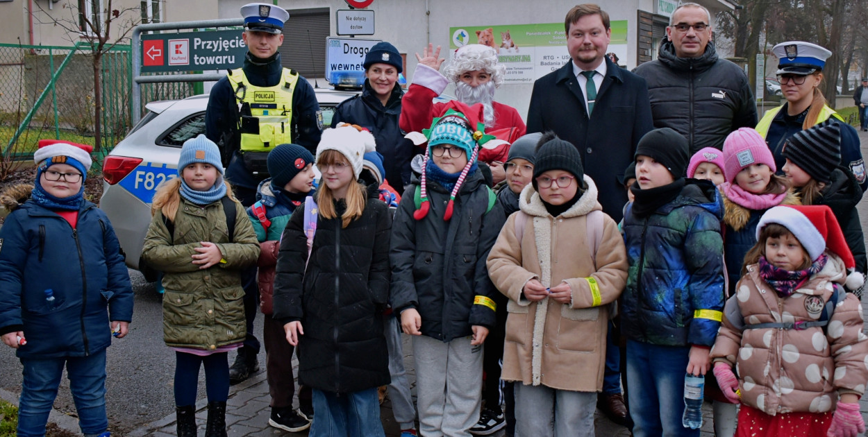 Szanowni Państwo, jak co roku w akompaniamencie kutnowskich policjantów włączamy się w akcję "Bądź Widoczny i Bezpieczny na Drodze" w takim wesołym dniu, przed Mikołajkami. Staramy się, żeby dzisiaj w taki radosny, przystępny sposób pouczać, ale również edukować społeczeństwo powiatu kutnowskiego o tym, jak ważne jest to, żebyśmy to bezpieczeństwo w ruchu pieszym, zwłaszcza w tym momencie, kiedy ten ruch pieszy z ruchem drogowym się styka, zachowali bezpieczeństwo. Oprócz gadżetów odblaskowych mamy również ze sobą Mikołaja, który dzisiaj, jak rok temu, nie zawiódł i ma ze sobą worek słodkości, więc tutaj liczymy, że mieszkańcy pozytywnie odbiorą tę akcję.