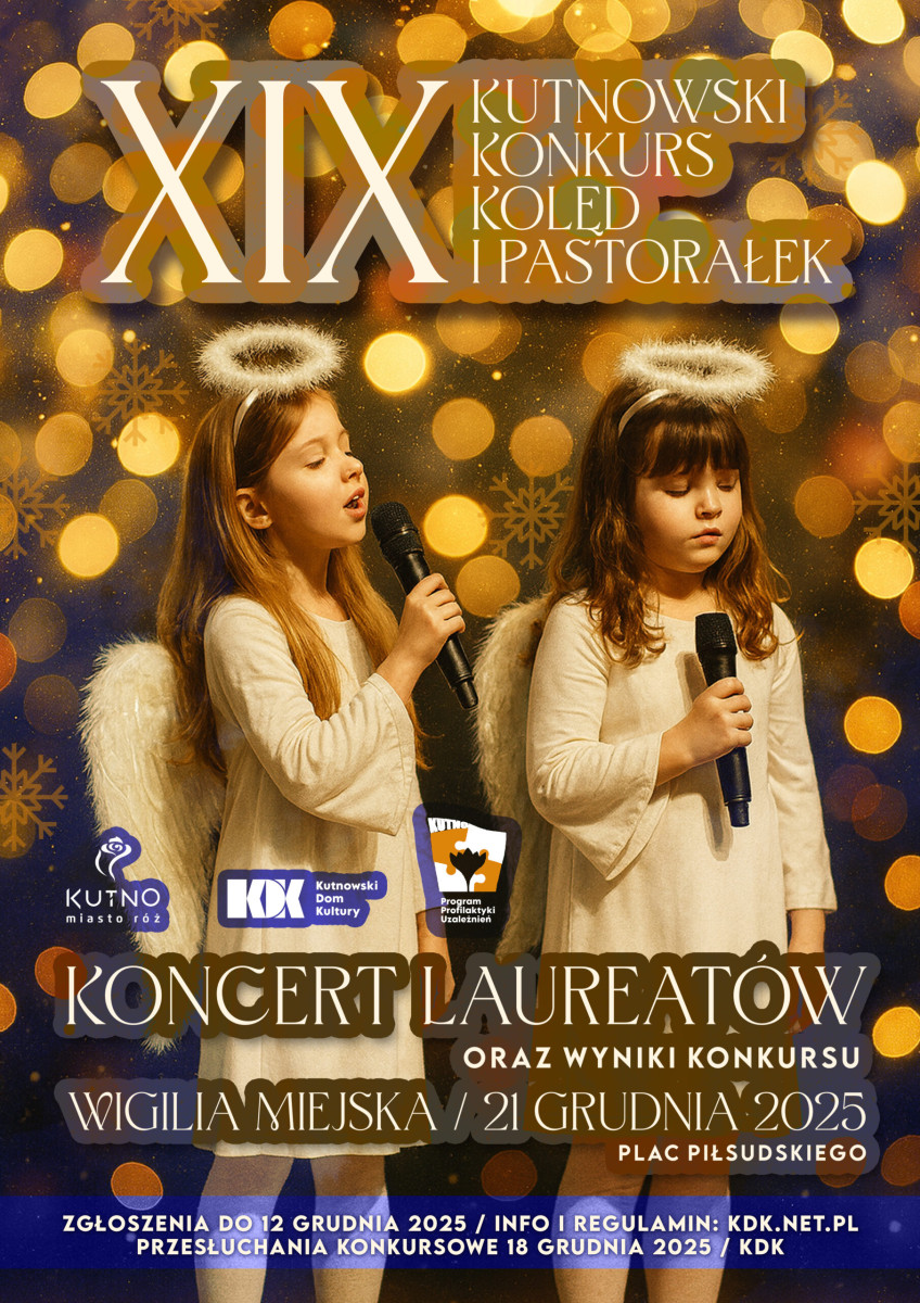 Na stronie Kutnowskiego Domu Kultury można znaleźć wszystkie szczegóły, regulamin oraz formularz internetowy, który należy po prostu wypełnić. Wszystkich zakwalifikowanych zaprosimy potem na przesłuchania konkursowe 18 grudnia do Domu Kultury. Tam wysłucha tych wszystkich kolęd i pastorałek nasze jury, podejmie decyzję, kto zaśpiewał i zaprezentował się najpiękniej. I tych laureatów potem zaprosimy do występu raz jeszcze 21 grudnia podczas Wigilii Miejskiej, więc będzie też okazja, żeby te przygotowane przez dzieci i młodzież kolędy i pastorałki zaprezentować raz w takiej bardzo świątecznej, już uroczystej scenerii, a dwa po prostu przed szeroką kutnowską publicznością.