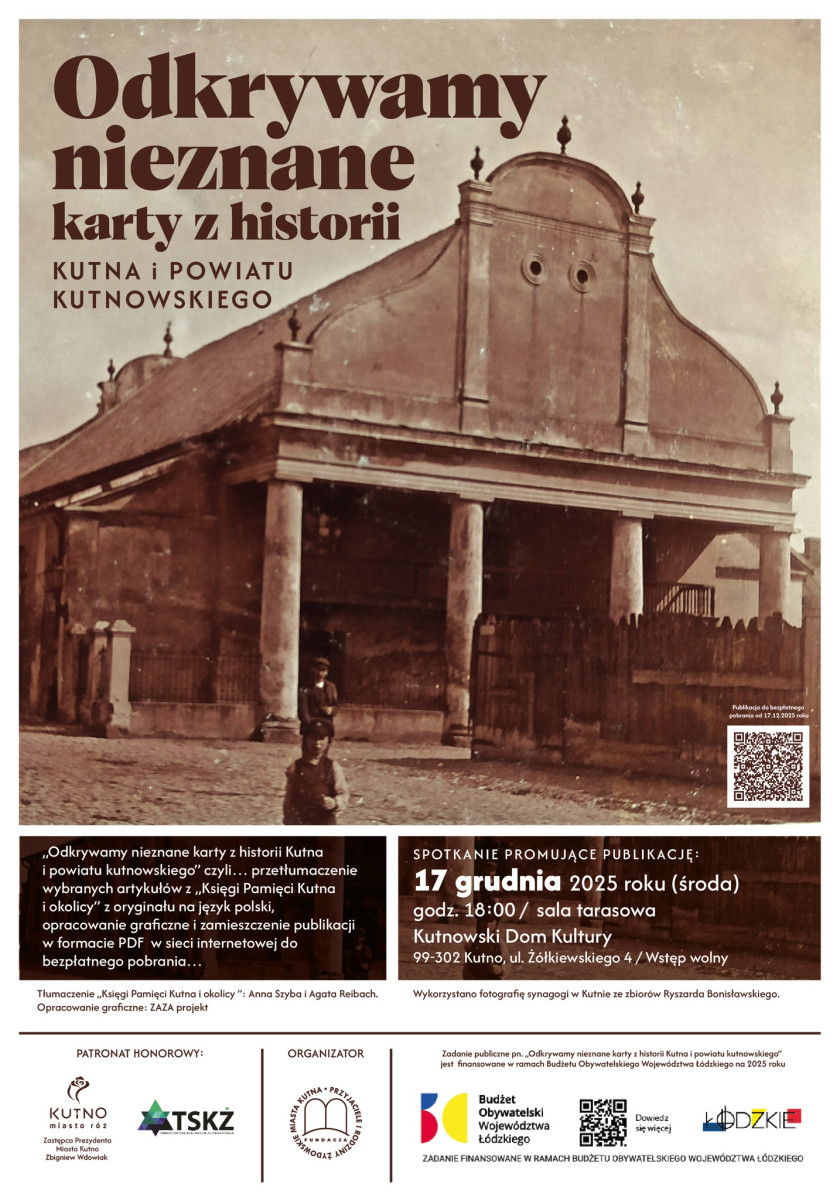 Promocja książki odbędzie się 17 grudnia o 18.00 w Sali Tarasowej Kutnowskiego Domu Kultury. Organizatorzy zachęcają do udziału i odkrywania zapomnianych historii Kutna.