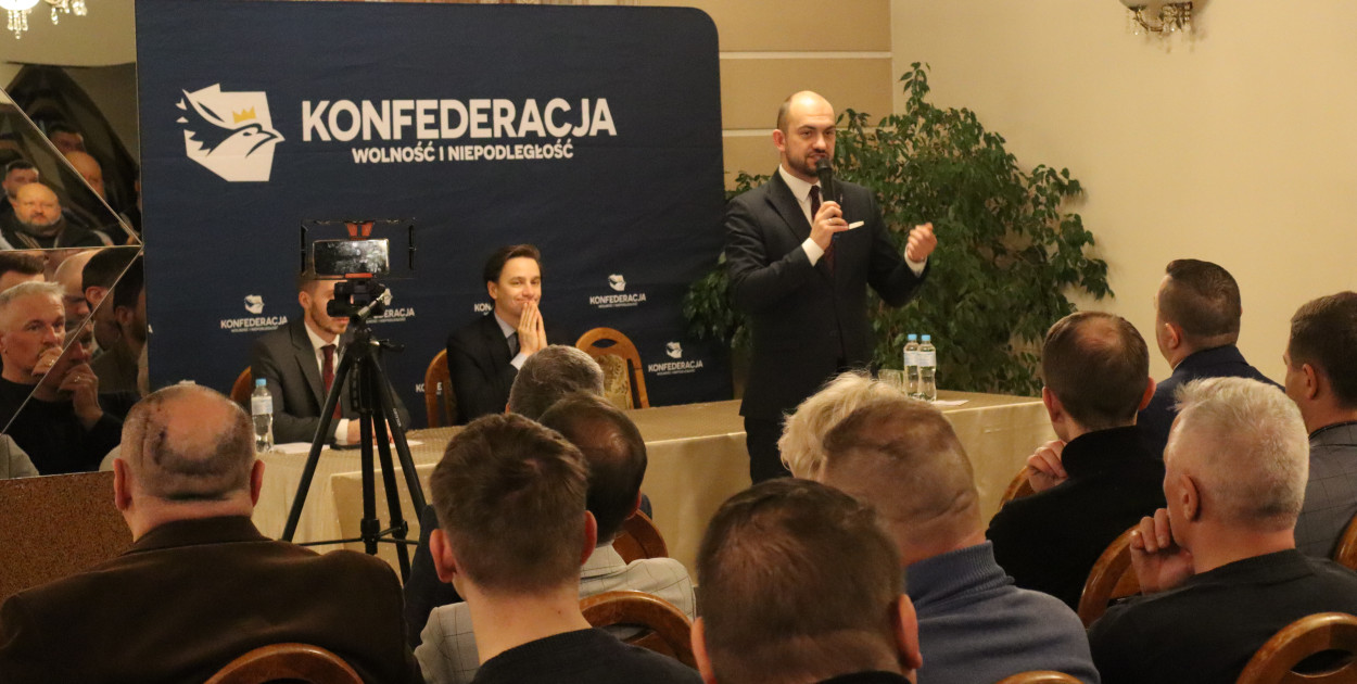 Podczas spotkania wicemarszałek podkreślał, że Konfederacja stawia na bezpośredni kontakt z wyborcami i budowanie silnych fundamentów w terenie.