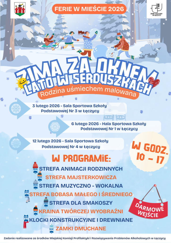 Dom Kultury w Łęczycy zaprasza dzieci, młodzież oraz rodziców na wyjątkowy cykl wydarzeń pod hasłem „Rodzina uśmiechem malowana”. W ramach akcji „Zima za oknem, lato w serduszkach” w łęczyckich szkołach odbędą się trzy wielkie pikniki rodzinne, wypełnione atrakcjami, muzyką i kreatywnymi warsztatami. Co najważniejsze - udział w wydarzeniach jest całkowicie bezpłatny.