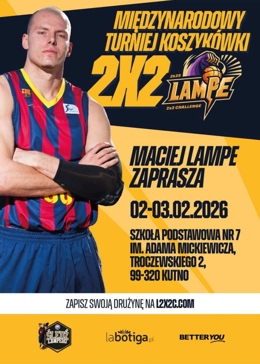 Mocnym i sportowym akcentem rozpoczną się tegoroczne ferie zimowe w Kutnie. W dniach 2 i 3 lutego w Szkole Podstawowej nr 7 odbędzie się wyjątkowe wydarzenie skierowane do młodych fanów koszykówki - turniej koszykarski 2 vs 2 z udziałem wybitnego sportowca Macieja Lampego.