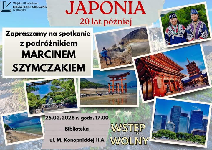 Miejska i Powiatowa Biblioteka Publiczna w Łęczycy zaprasza na spotkanie z podróżnikiem Marcinem Szymczakiem, który zabierze Was w podróż przez kraj Kwitnącej Wiśni – od skąpanych w tropikalnym słońcu plaż Okinawy po zimne krańce Hokkaido nad Morzem Ochockim, gdzie poznamy fascynującą kulturę rdzennych mieszkańców – Ainów. Oprócz zdjęć i filmów nie zabraknie anegdot, zakulisowych historii oraz osobistych refleksji z dwóch dekad podróżowania po Japonii.