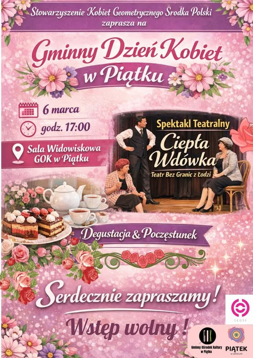 Gmina Piątek razem z Stowarzyszenie Kobiet Geometrycznego Środka Polski oraz Gminny Ośrodek Kultury w Piątku serdecznie zapraszają do udziału w Gminnym Dniu Kobiet.
