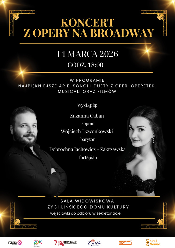 Żychliński Dom Kultury zaprasza na koncert Z Opery na Broadway. Będzie to muzyczna podróż przez najpiękniejsze arie, songi i duety z oper, operetek oraz musicali. To niezwykłe wydarzenie połączy świat wielkiej opery z magią sceny broadwayowskiej, tworząc wieczór pełen emocji, wzruszeń i niezapomnianych melodii.