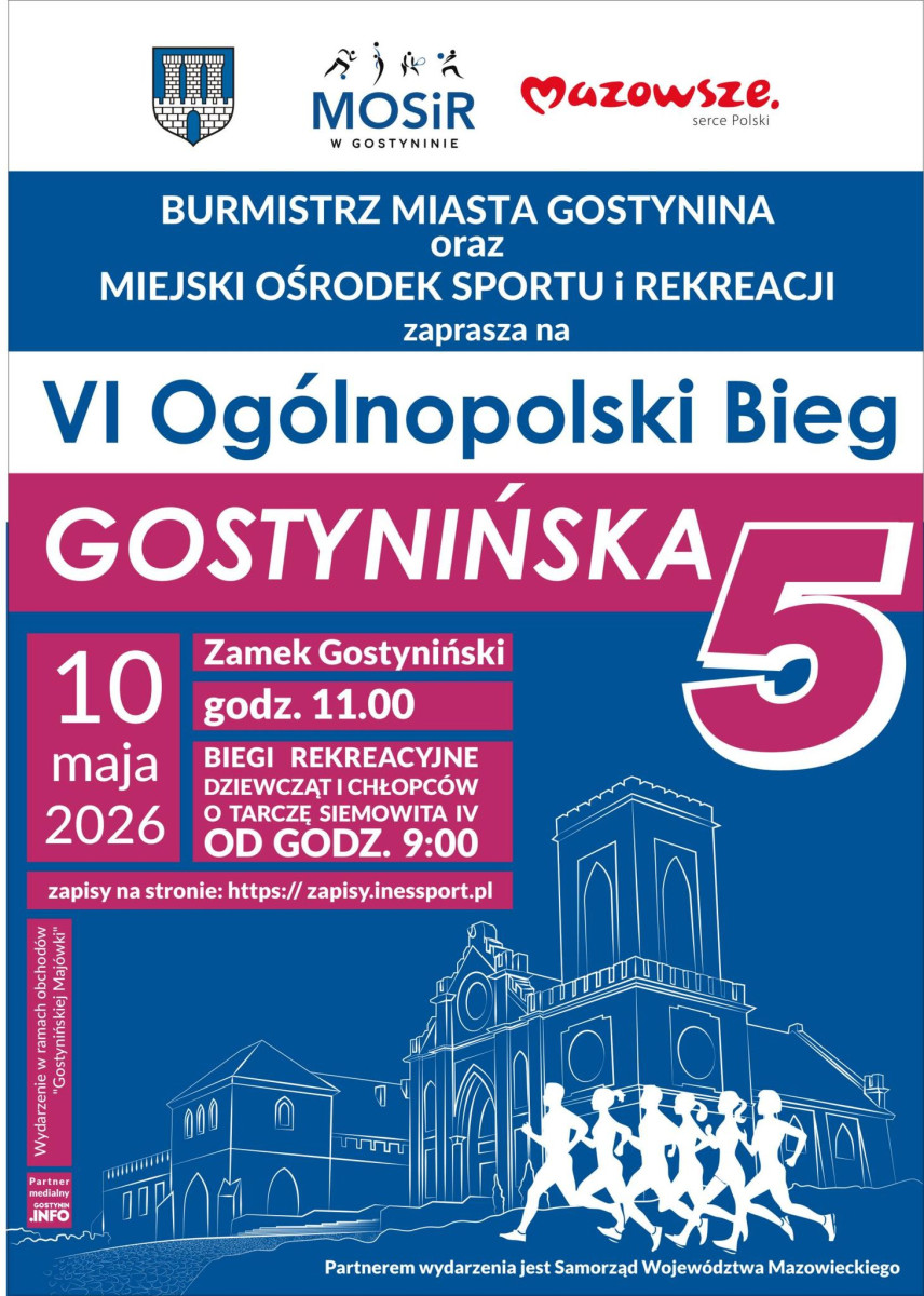 Widzimy się 10 maja 2026 roku pod Zamkiem Gostynińskim. (...) Nie zwlekaj – zapisz się już dziś! Listy startowe zapełniają się bardzo szybko.