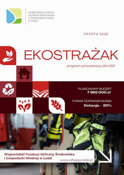 Program wsparcia dla strażaków ochotników wraca w nowej odsłonie. Wojewódzki Fundusz Ochrony Środowiska i Gospodarki Wodnej w Łodzi zatwierdził program Ekostrażak 2026, który zakłada dofinansowanie zakupu sprzętu i wyposażenia dla jednostek Ochotniczej Straży Pożarnej z województwa łódzkiego.