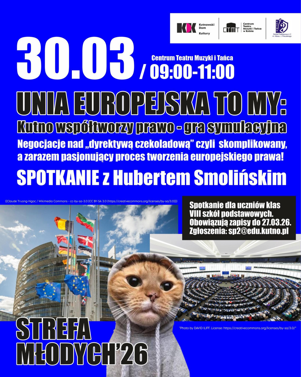 W Kutnowskim Domu Kultury będzie organizowane spotkanie, na którym uczniowie szkoły podstawowej będą mieli okazję zdobyć wiedzę z zakresu powstawania prawa w Unii Europejskiej. Wcielą się też w role przedstawicieli najważniejszych instytucji europejskich i podyskutować nad tzw. dyrektywą czekoladową.