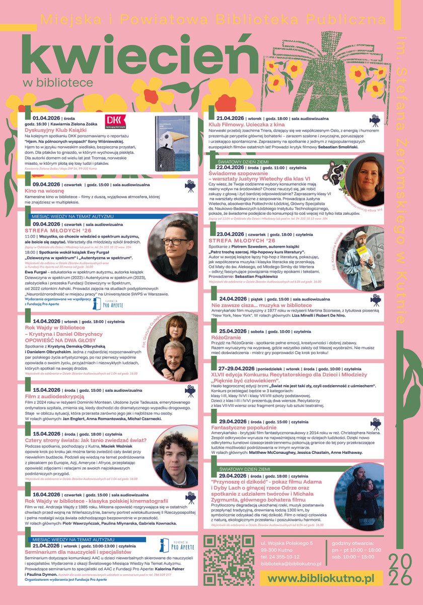Miejska i Powiatowa Biblioteka Publiczna im. Stefana Żeromskiego w Kutnie przygotowała na kwiecień moc atrakcyjnych i ciekawych wydarzeń. Program jest tak zaprojektowany, że każdy znajdzie coś dla siebie - zarówno młodsi oraz starsi.