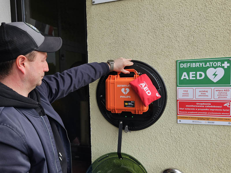 Defibrylator AED to wysoce specjalistyczne, skomputeryzowane urządzenie, które za pomocą poleceń głosowych i wizualnych prowadzi osoby przez procedurę bezpiecznej defibrylacji w zatrzymaniu krążenia. Urządzenia ratujące życie zostały kupione w ramach Programu Ochrony Ludności i Obrony Cywilnej na lata 2025-2026 r. na terenie Gminy Piątek w zakresie zadań własnych, którego celem jest wzmocnienie bezpieczeństwa mieszkańców. Ich obsługa jest maksymalnie ułatwiona, tak aby każdy mógł obsłużyć urządzenia - po uruchomieniu prowadzą użytkownika przez całą procedurę za pomocą komunikatów głosowych.