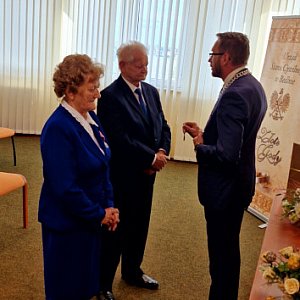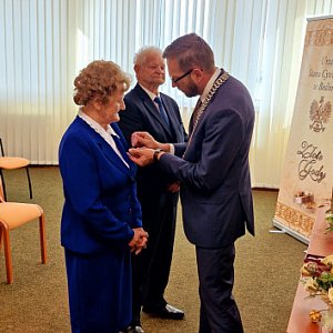 W trakcie ceremonii para małżeńska, która przez 50 lat wspólnie kroczyła przez życie otrzymała medale Prezydenta RP za długoletnie pożycie małżeńskie.