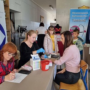 Dodatkowo badanie ciśnienia tętniczego i poziomu glukozy we krwi, wykonały Iwona Paryż i Martyna Zielińska. Pani Ola Różycka udzielała konsultacji kosmetologicznych.