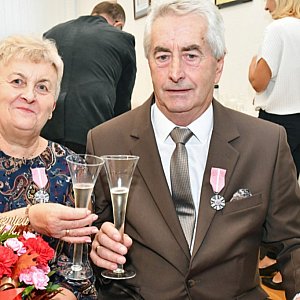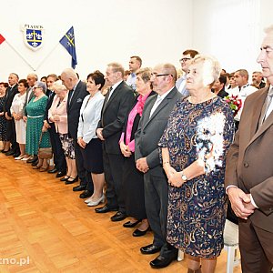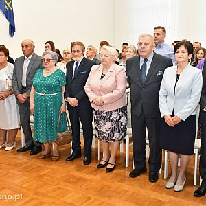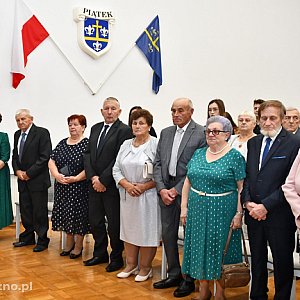 Po powitaniu dostojnych Jubilatów oraz ich rodzin przez Burmistrz Annę Matusiak, Agnieszkę Wójcik – Przewodniczącą Rady Miejskiej i Annę Tyburę – Kierownika USC w Piątku pary małżeńskie odnowiły złożoną pół wieku temu przysięgę małżeńską. Następnie Burmistrz Piątku odznaczyła dostojnych Jubilatów medalami przyznanymi przez Prezydenta RP.
