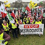 Delegacja powiatu kutnowskiego strajkuje dziś w Strasburgu na Placu de Bordeaux. Uczestnicy protestują przeciwko umowie Unii Europejskiej z krajami Mercosur.