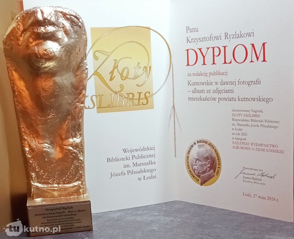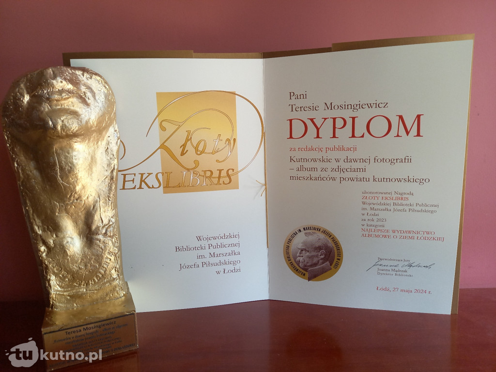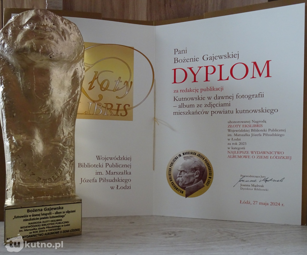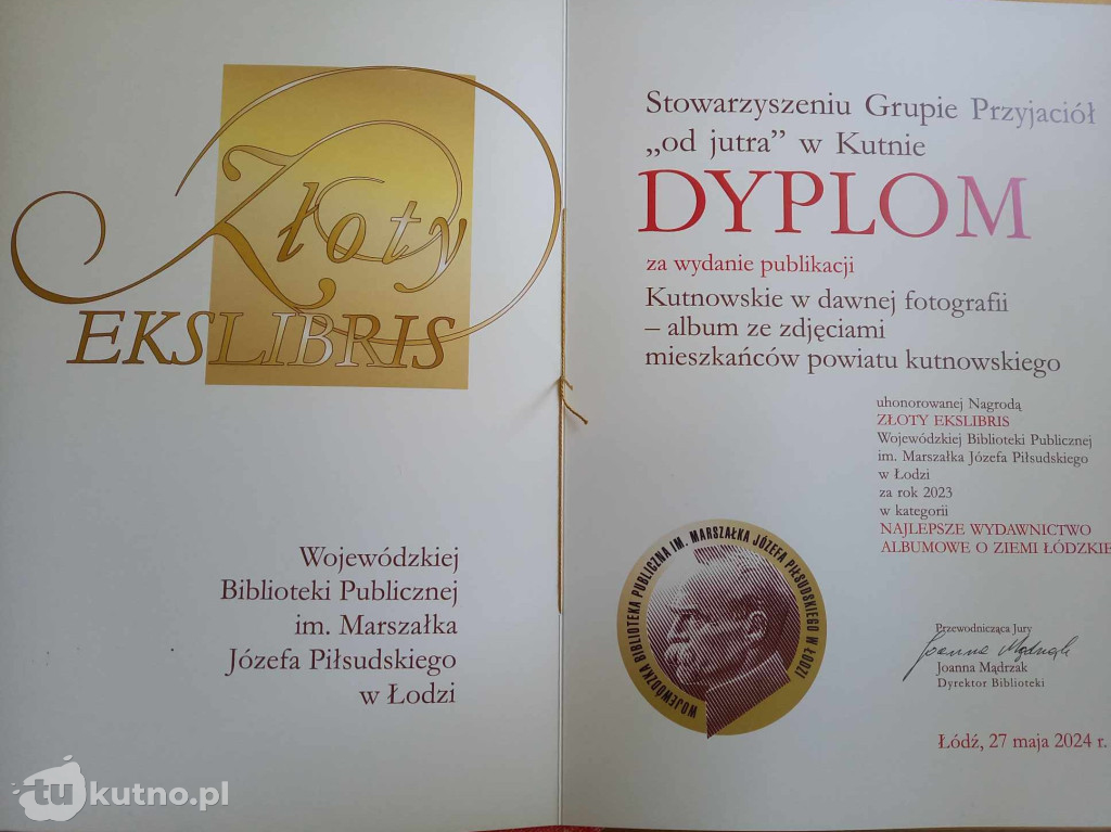Jury Wojewódzkiej Biblioteki Publicznej w Łodzi doceniło album ze zdjęciami 'Kutnowskie w dawnej fotografii. Album ze zdjęciami powiatu kutnowskiego”. Publikacja otrzymała ZŁOTY EKSLIBRIS za Najlepsze Wydawnictwo Albumowe o Ziemi Łódzkiej za 2023 rok.